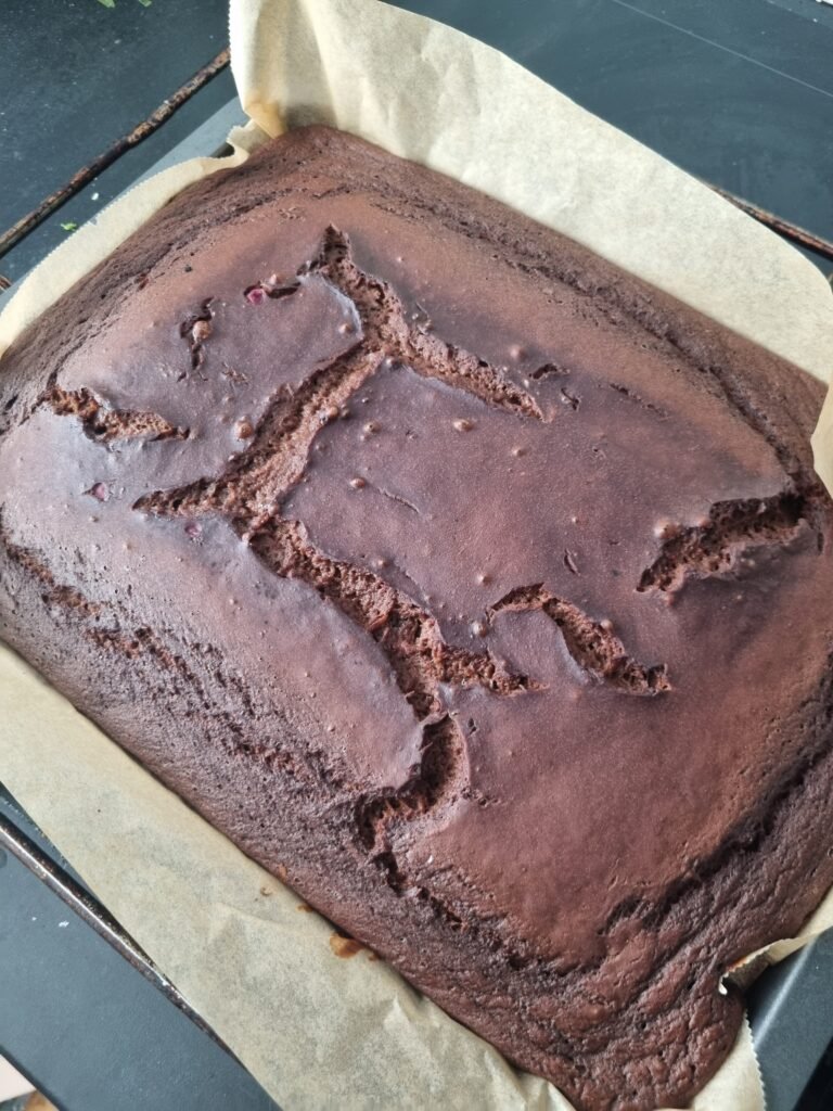 - Stek midt i ovnen i omtrent 35-40 minutter. Sjekk med en tannpirker om kaken er ferdigstekt.