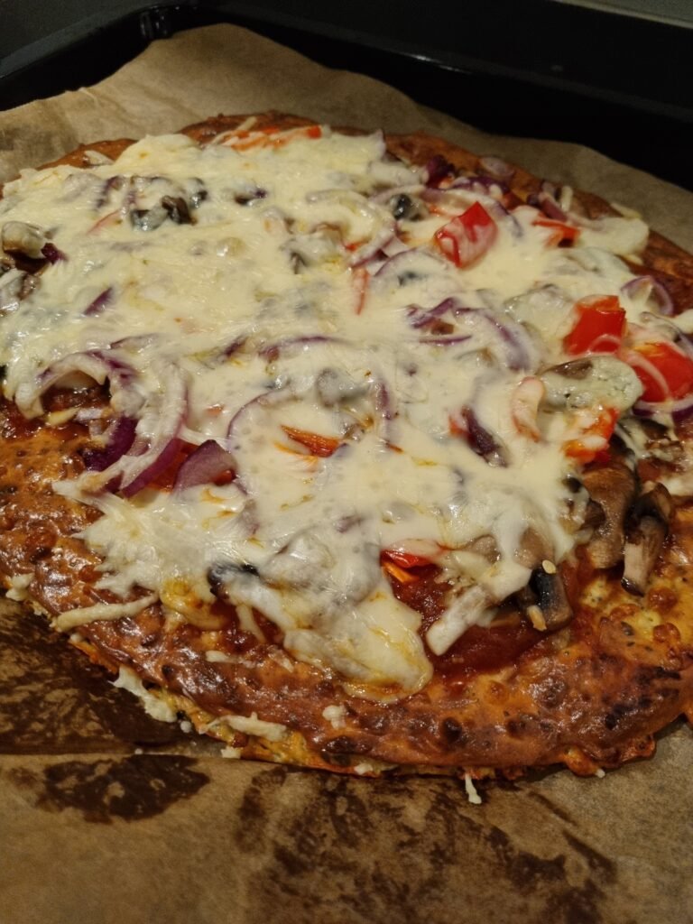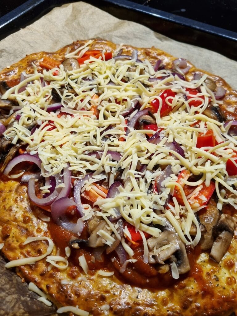 Dette er pizzaen du lager når du vil ha noe som metter godt, smaker skikkelig pizza, og samtidig gir en god dose protein. Cottage cheese i bunnen høres kanskje uvant ut, men når den mikses sammen med egg, mel og ost, får du en fast og saftig bunn som holder formen og får en deilig, litt seig konsistens. Den fungerer perfekt som et litt sunnere hverdagsalternativ, uten at du må ofre pizzafølelsen.