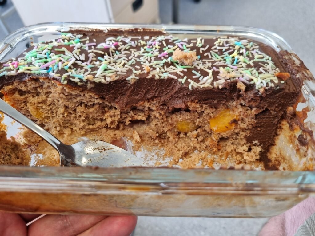 Resultatet var at en ildfast form som gikk ned på høykant! Passe mengde sjokoladesmak og greit med fiber.