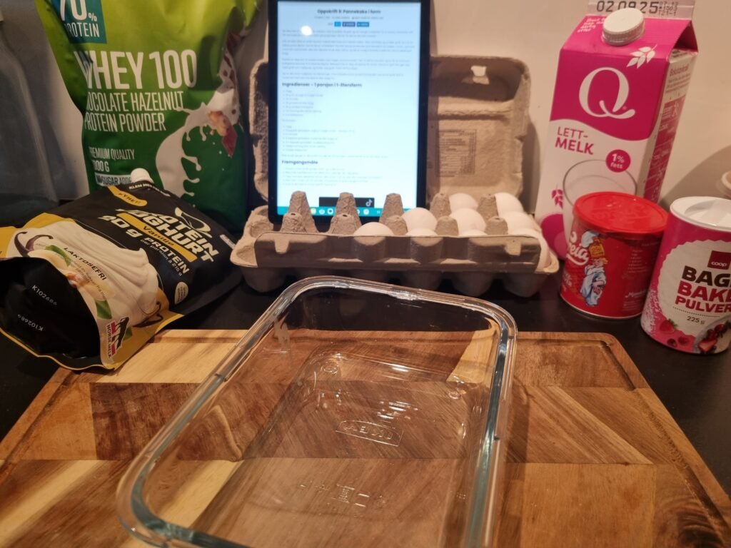 Syk og dårlig matlyst førte til at jeg måtte lure litt næring inn i kroppen. I en liten pause av covids kognitive tåke, så kom jeg på at man kan jo putte litt proteinpulver med sjokolade- og valnøttsmak oppi istedenfor vanilje. Og en god dose med bær.